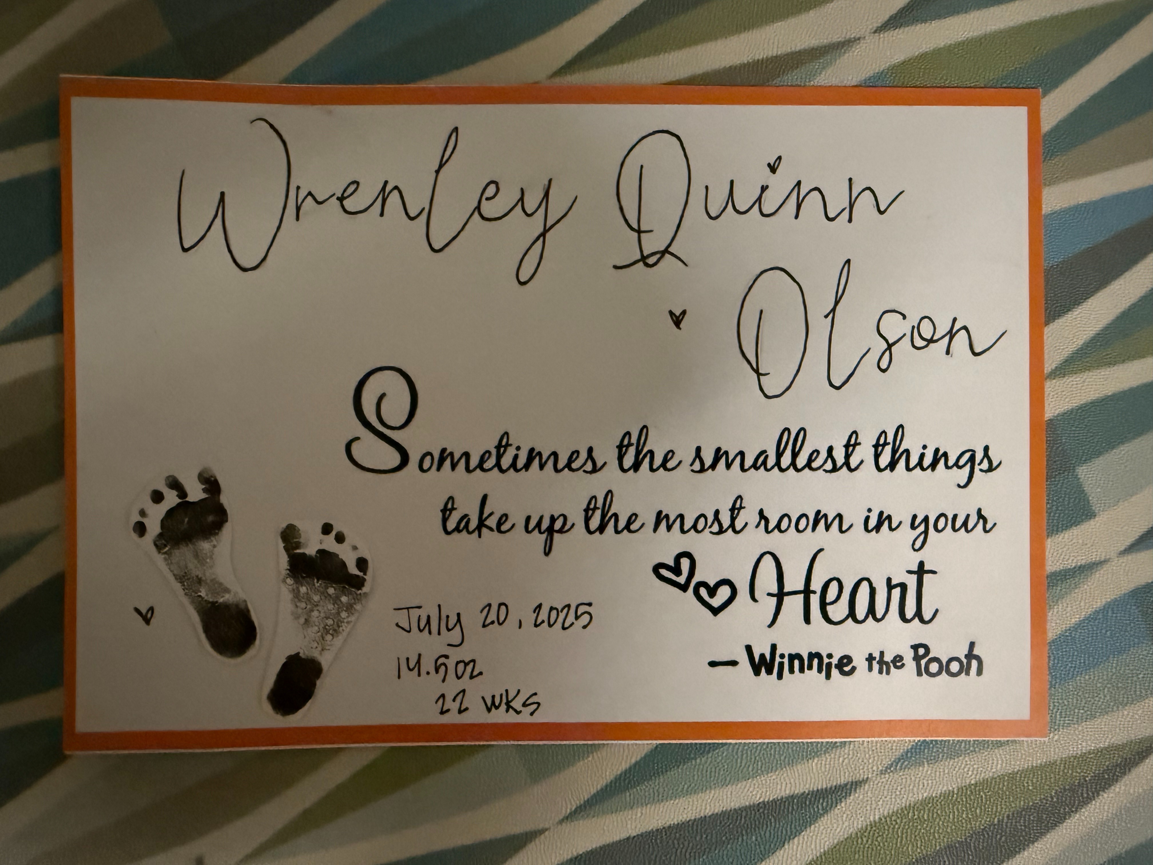 On July 20, 2025, our beautiful granddaughter Wrenley was born at just 22 weeks gestation, weighing only 1 pound. She is truly a miracle baby, and while we are incredibly thankful she made it into this world, her fight has only just begun.