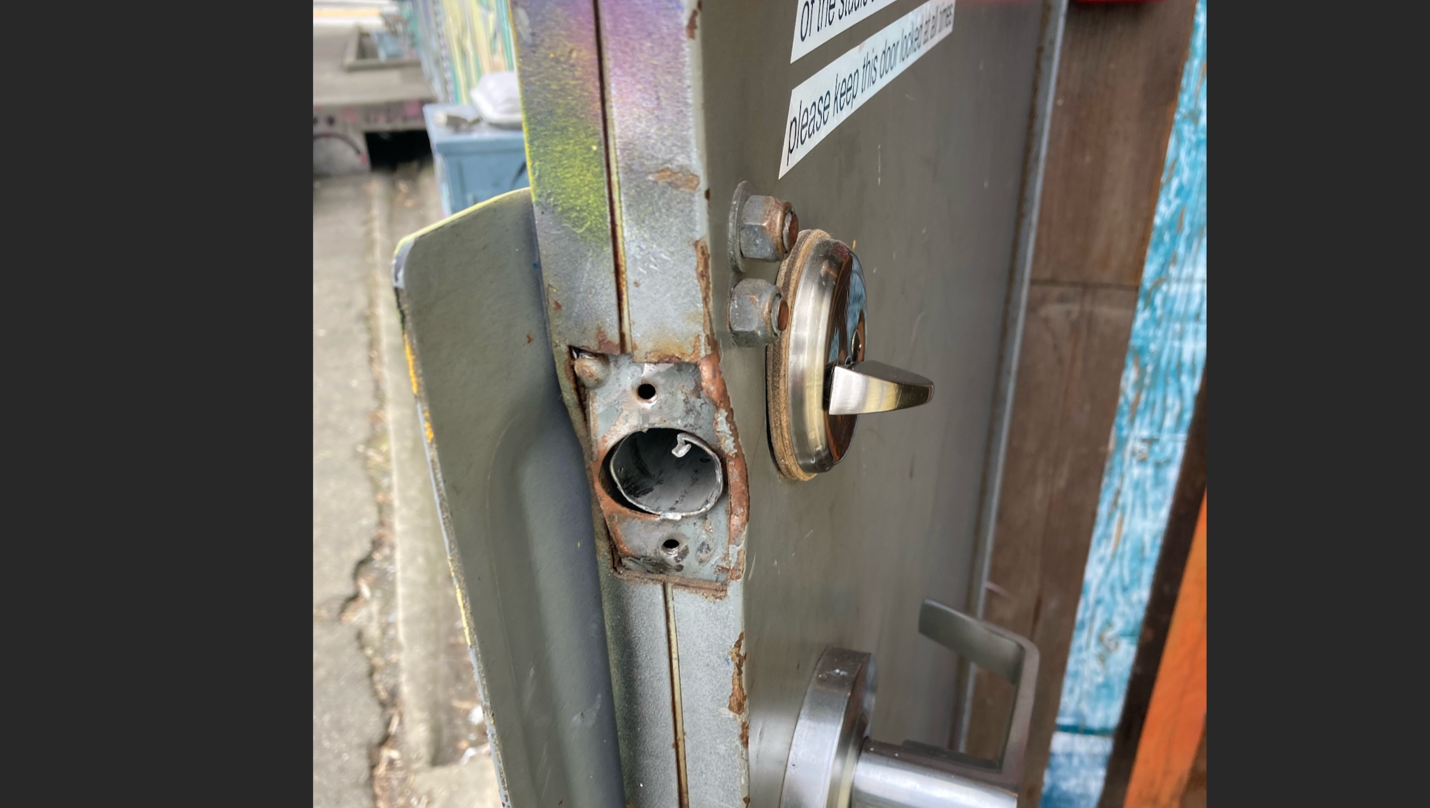 Thankfully, nobody was hurt but the damage to the studio and the loss of equipment is incredibly painful - we’re a small arts organization in Oakland, without any kind of corporate backing or tech money behind us. At our current rates, it would take years of booked studio time to pay for everything. The value of our single U47 microphone was $38,000. The cost of fixing and reinforcing all three points of entry alone to prevent future break-ins is around $15,000.