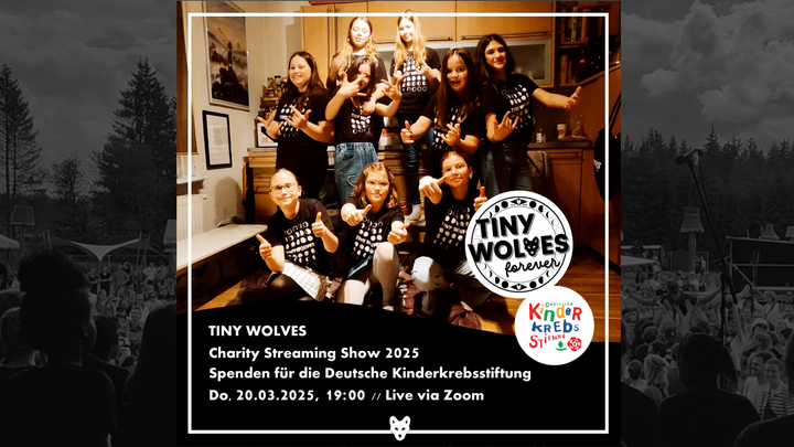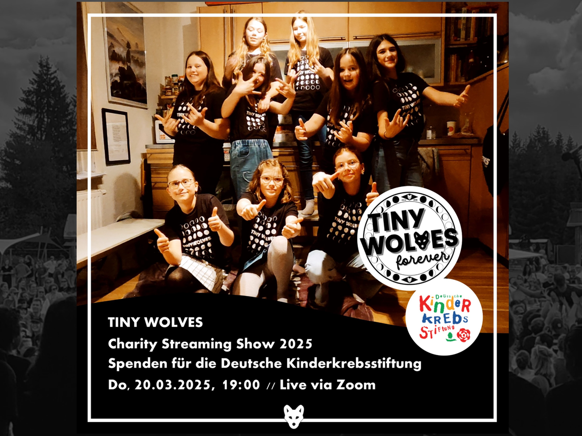 Es ist Tradition und bleibt uns wichtig: Auch im Jahr 2025 veranstalten die Tiny Wolves eine Charity Streaming Show und spielen ein besonderes Wohnzimmerkonzert, das über Zoom in die ganze Welt übertragen wird. Wie in den letzten Jahren wird das Konzert kostenlos zu sehen sein, aber wir möchten auch in diesem Jahr wieder Spenden für einen guten Zweck sammeln.