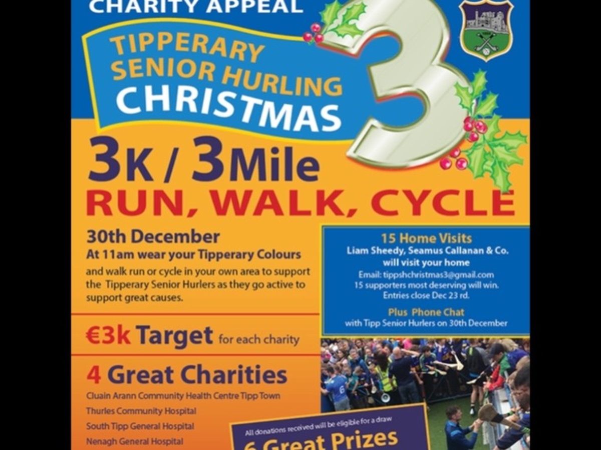 The Tipperary hurlers are embarking on a fundraising charity appeal this Christmas where they hope to raise at least €3k for 4 great local Tipperary causes - Nenagh General Hospital, South Tipperary General Hospital, Thurles Community Hospital and Cluain Arann Community Health Centre, Tipperary Town.