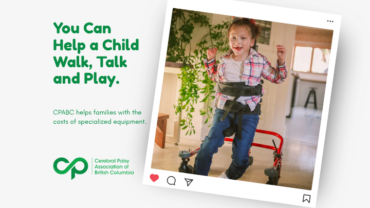 Every week in British Columbia, two families learn that their child has cerebral palsy. The good news is that therapies and assistive equipment can give that child a chance to live a full and independent life. But specialized equipment is expensive—beyond what most families can afford. Families need help to pay the portion governments don’t cover.