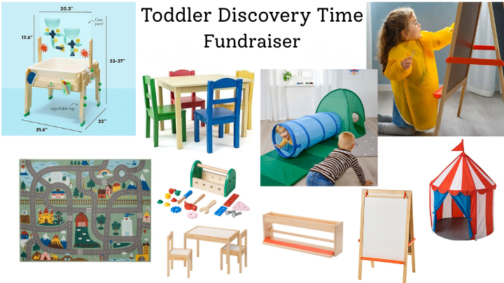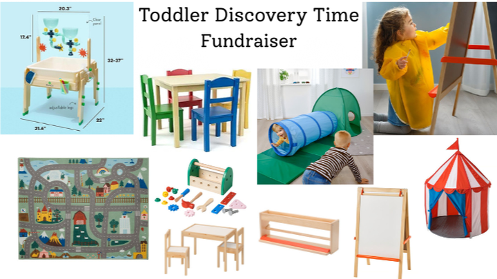 Our GoFundMe fundraiser is to help us purchase needed supplies and playtime equipment for a new toddler-focused program we are hoping to offer weekly. Needed supplies consist of - toddler-size tables and chairs, play mats and rugs, a new sensory table, learning toys, climbing toys, protective aprons, toddler easels, paint mats, and other assorted items.
