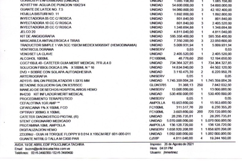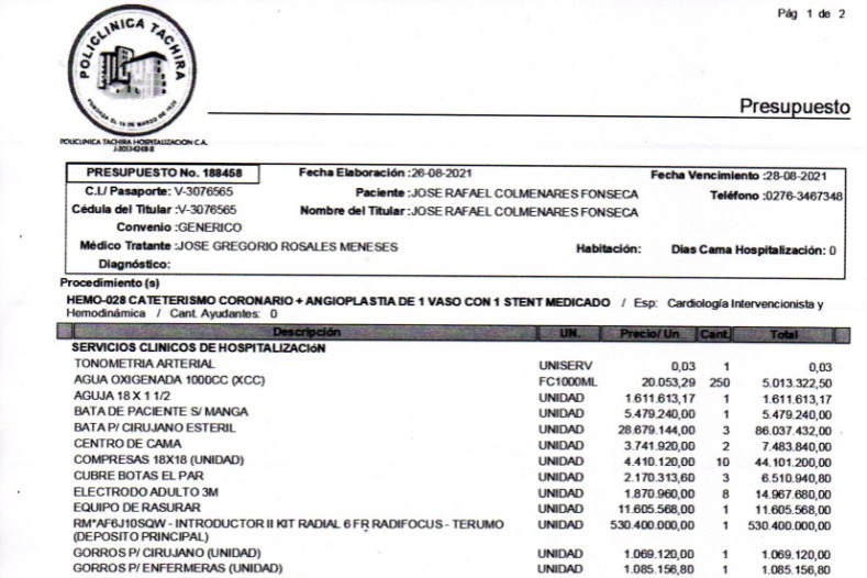 Anexamos informe médico y presupuesto en el que no están incluidos los honorarios médicos que son $800.