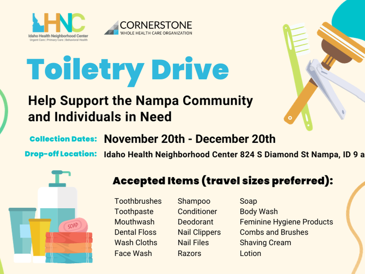 For low-income households in the Nampa, ID community, access to personal hygiene products may be limited. You can help by donating new, unopened personal hygiene products to Idaho Health Neighborhood Center 824 S Diamond St Nampa, ID from   November 20th - December 20th during business hours M-F 9 am - 6 pm. We are also accepting donations that will fund bulk purchases of hygiene products to be distributed to those in need. Please consider giving today!