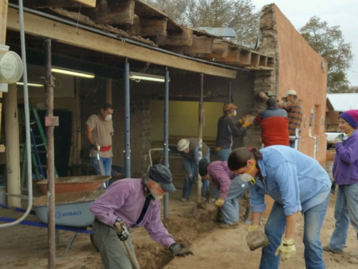 If you have been by the gallery in the past few months, you may have noticed that what was once the pottery studio has been under renovation. What started as a simple remodeling of the space to enlarge our gallery, turned into something much larger when we discovered that the east wall, built in the 20's of terrones, hand cut adobes, was unstable and had to be replaced.