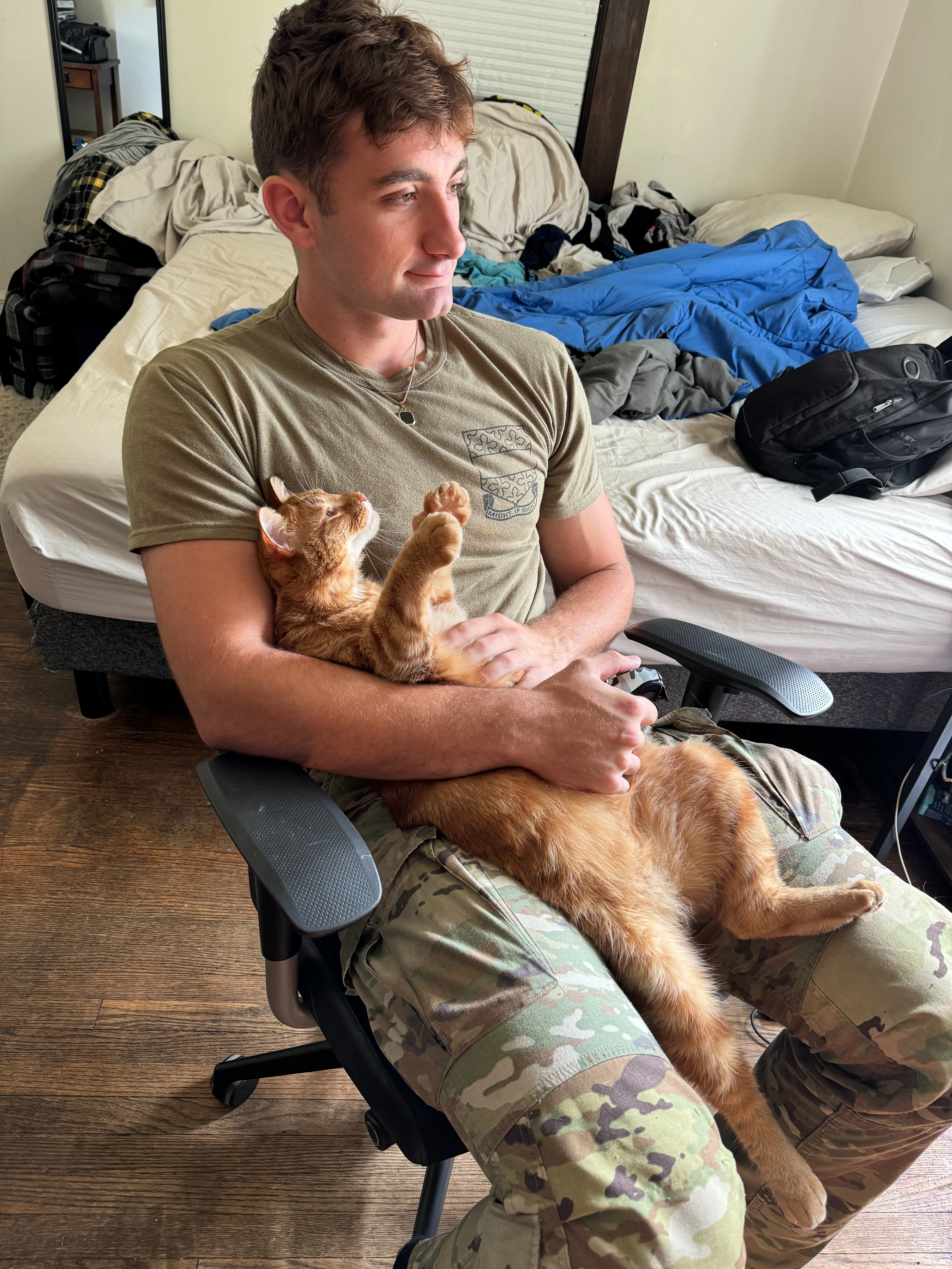 I grew up with dogs and didn't really understand how anyone could be a "cat person" until I met Tommy. He is a lover, always seeking a human to cuddle, a quirky goofball (he likes the swat at the faucet when we wash dishes), and he has the loudest purr I've ever heard. James has worked very hard to put himself through school with scholarships, ROTC, and jobs in the restaurant industry. He has quickly become one of my closest friends, and I absolutely love seeing how much he adores his cat and how much Tommy loves him. Therefore, every cent raised through this GoFundMe will go towards Tommy's health expenses ($3500 surgery and $500 emergency vet bill). Everything helps, even $0.50 or a share of this link.