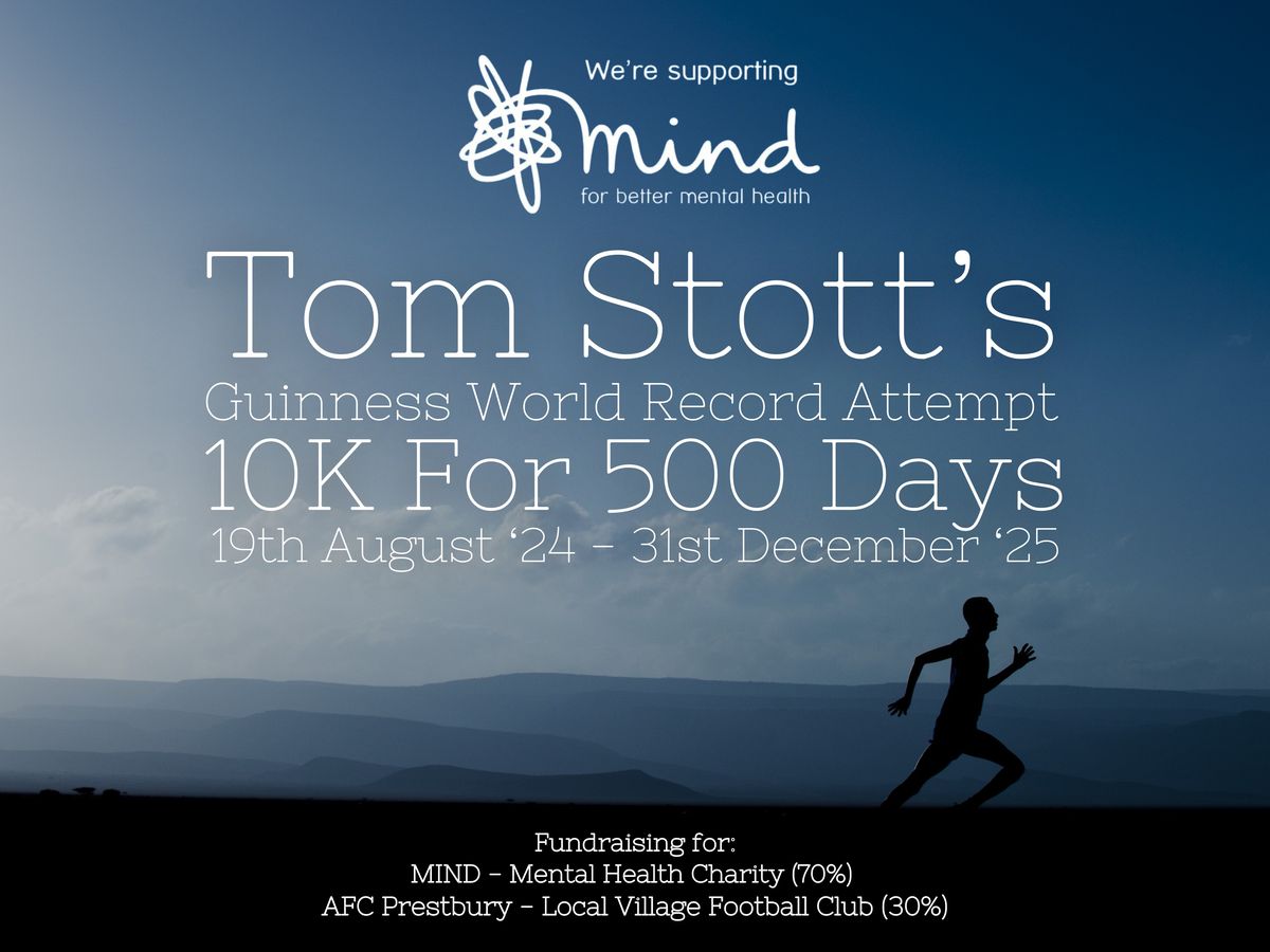 Hello, my name is Tom Stott, and I'm embarking on a journey to break the Guinness World Record for consecutive 10km runs.
