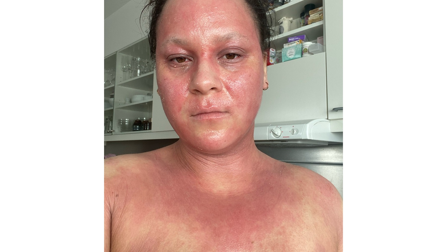 (without informing me that she could be addicted too and had to continue steroids after birth). In May 2023, my body shut down overnight after tapering off prednisolone. From one day to another, I was unable to be a mother or a partner. Time stood still, and I felt like a zombie. My body swelled up to what felt like double size. My body, especially my face, was one big wound, I was oozing fluid from every inch of my body. I ate through a straw because I couldn't open my mouth, and I couldn't see my little girl, who was only three months old at that time. Never willing to give up, I still refused to give up breastfeeding, so I ended up getting help from family to latch her onto my breast, as I was blind from facial wounds. (The picture below is from my early stage of tsw).