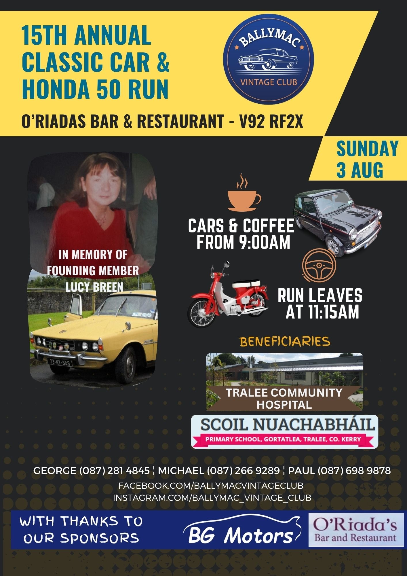 This year marks the 15th Annual Classic Car & Honda 50 Run, proudly hosted by the Ballymac Vintage Club. As part of this special milestone, we are raising funds for Tralee Community Hospital, one of our chosen beneficiaries for 2025.