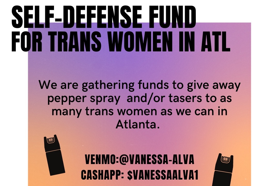 We are raising money to give away self-defense items such as pepper spray and/or tasers to trans women in Atlanta. Trans women, especially Black and Brown trans women, are at a higher risk of physical harm. We want to keep them safe and hope that this can help them.