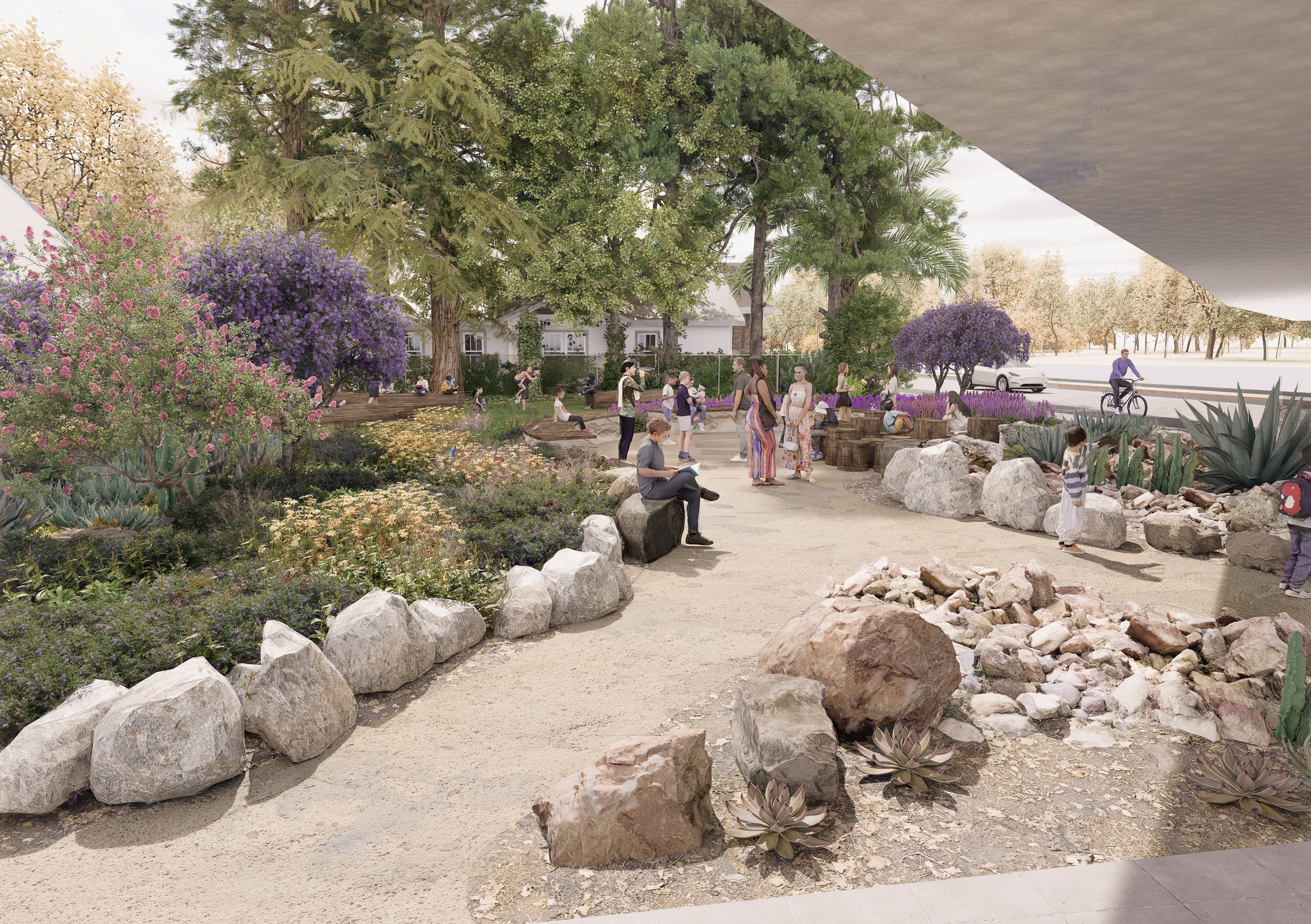Next to the redwood grove, currently an empty lot sometimes used for illegal dumpling— imagine what this blank canvas will look like in full bloom!
