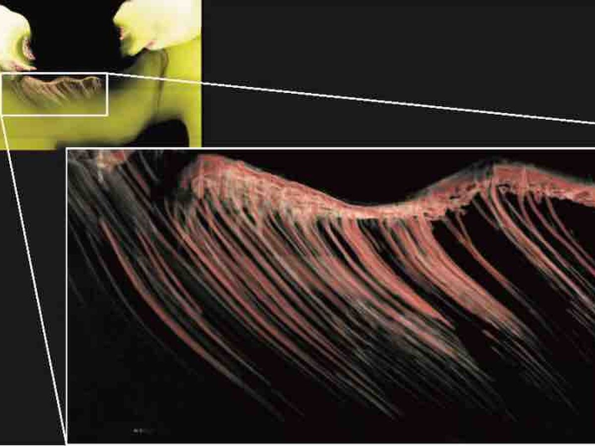 Figure 1. SDF induces solid silver structures in tooth dentin weakened by the caries process. Sychrotron micro-CT images of SDF-treated cavities. Silver-based solid structures in red and white. See cover image as well. This work was performed on teeth contributed from patients of Drs. Cate Quas, John Frachella, Steve Duffin , and Jeremy Horst , at the Advanced Light Source 's Beamline 8.3.2 .