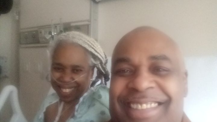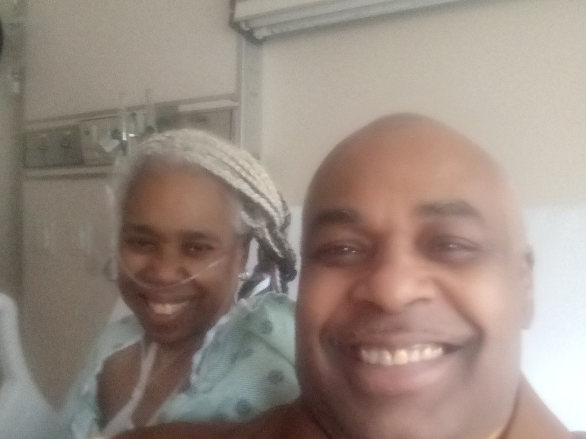 Kimberly has to constantly refill these small heavy metal tanks with air, she has COPD and Enphazima. Her oxygen tank runs out all the time. We have to make it back home quickly so she can plug herself up to her concentrator so she can breath.