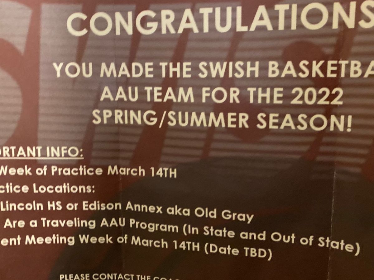 Hello, My name is Masiah. I recently got accepted into our local AAU basketball team!!! Called Swish. I am reaching out for any financial help towards donations that would directly go towards lodging, food, uniforms, shoes, tournament fees, and travel expenses. This experience is extremely important to me because the possibility of doing something I love has been out of reach due to the pandemic for the last couple of years. I have always wanted to be a part of an AAU team that thrives on community and brotherhood. This basketball league creates potential opportunities to be seen by college recruiters, and being able to apply this experience to my college applications is my overall goal. I also am willing to pay it forward with any help you may need; things like this take a "community effort." Please know that anything placed towards this is an absolute blessing and will not be taken for granted. Shown below Is a further breakdown of expenses and due dates. Please feel free to contact me with any questions, and thank you again for any support in advance; God bless!