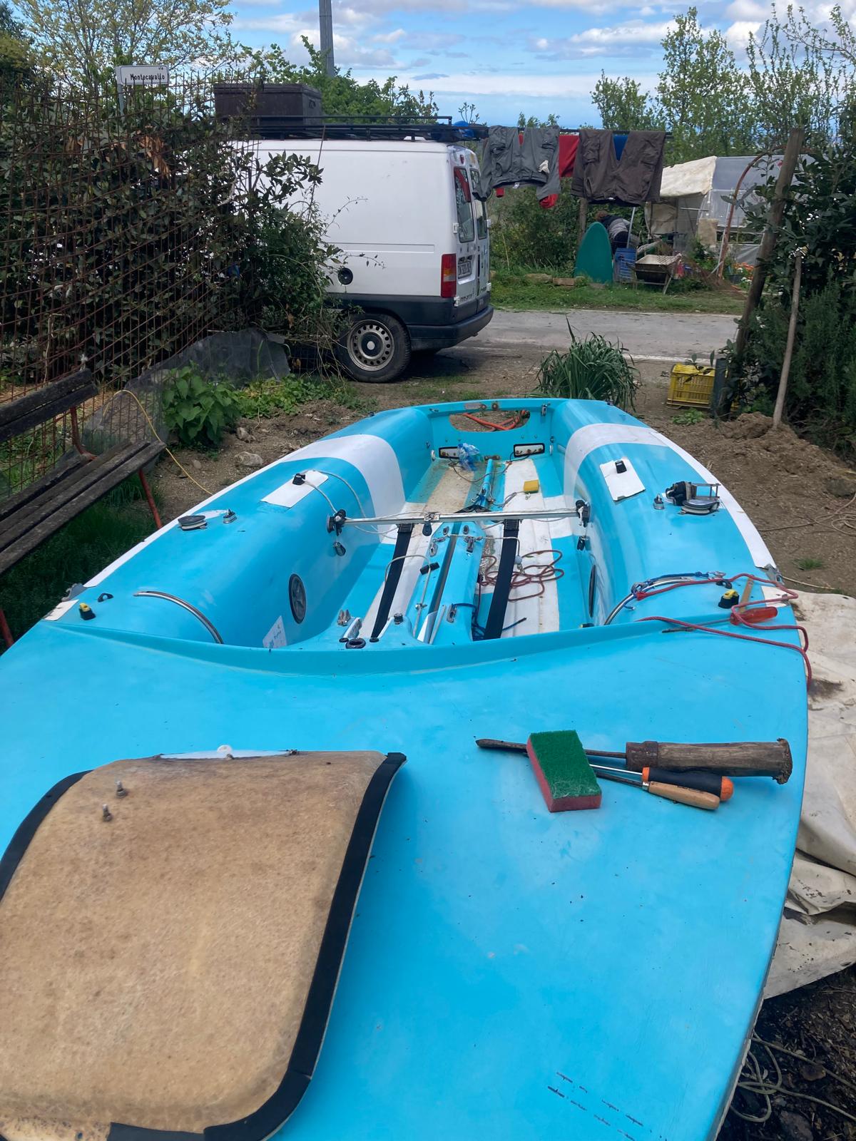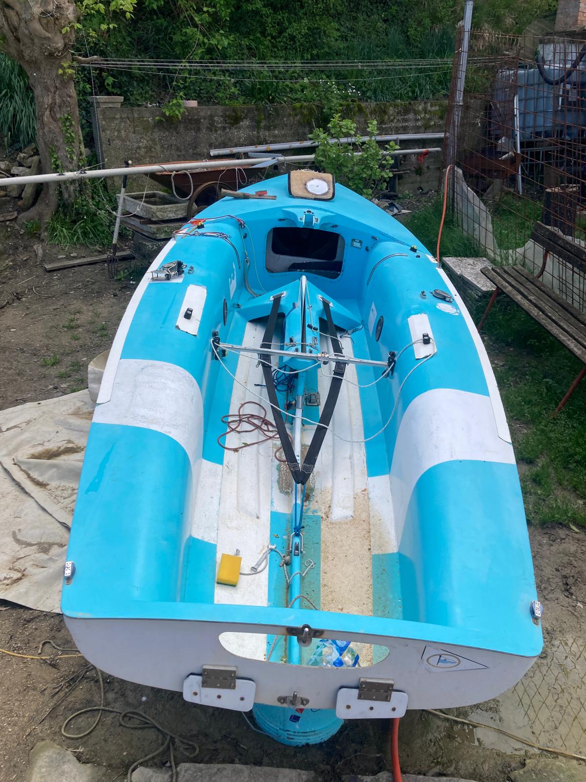 Il nostro obiettivo attuale è quello di attraversare il mare dal nord al sud d'Italia con una piccola barca a vela tipo deriva di appena 4,70 m che abbiamo acquistato e stiamo restaurando.