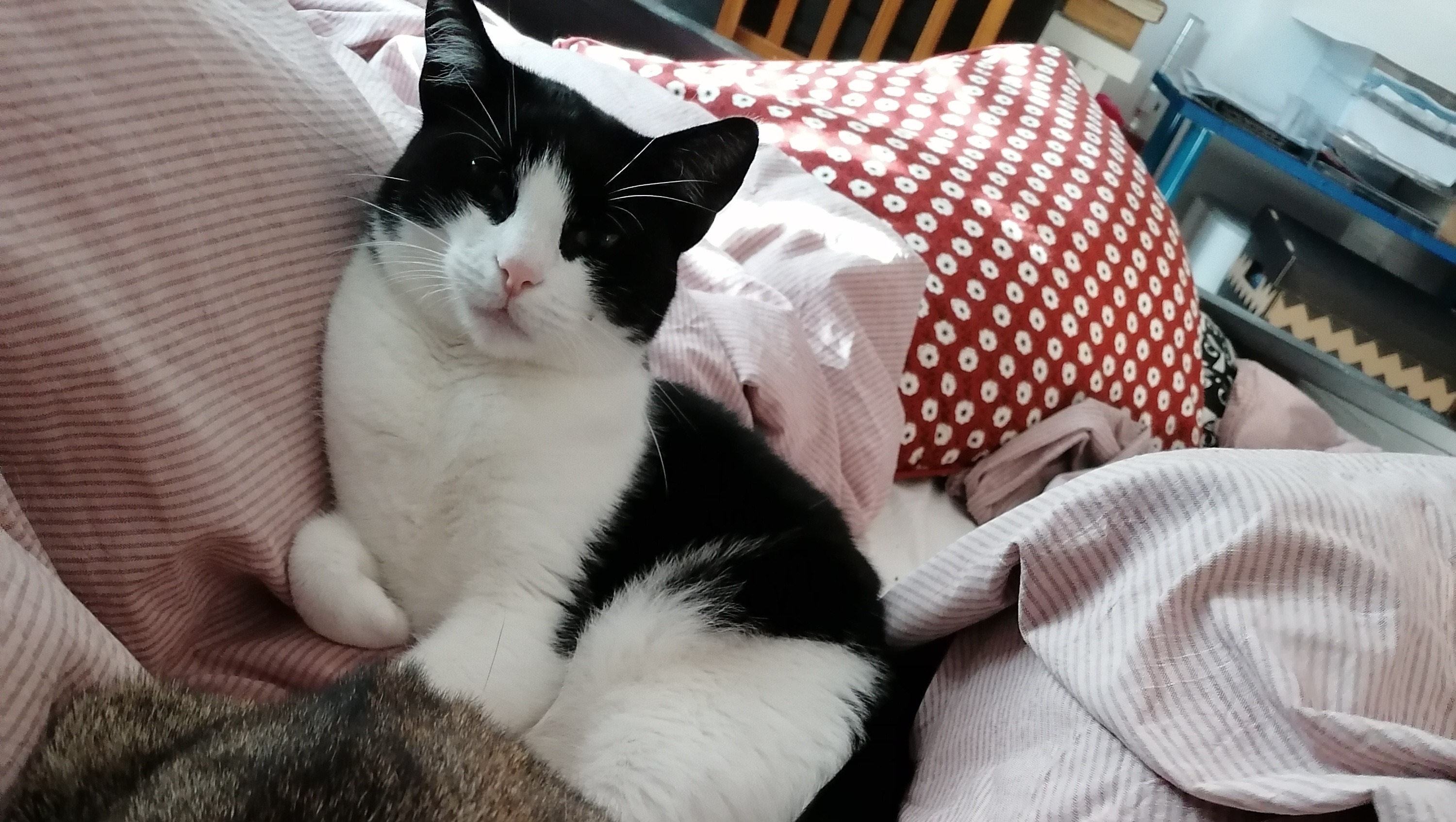 Alara was really good and well behaved and it was a simple vet visit, however adding the cost of 141 € to the bill. (Thankfully though her blood results look good, so beside the problem leg apparently a very healthy cat.)