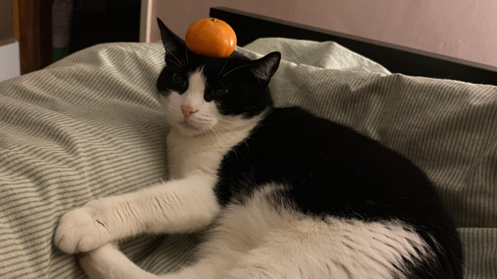This is about our small, dense tuxedo cat with the howl of a husky: