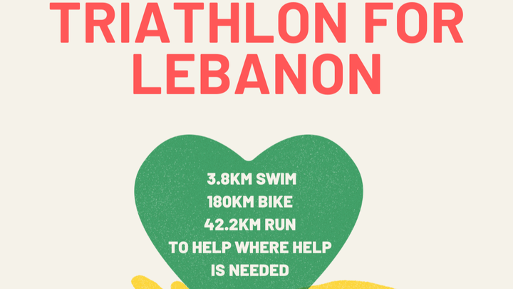 A triathlon in three days, on Nov 22nd-24th. A 3800m swim, 180km bike and 42km run, to help in providing food and shelter in Lebanon ❤️ I'd be so grateful if you would join me in whatever way you can, by swimming, biking, or running whatever distance and getting sponsored, or by donating