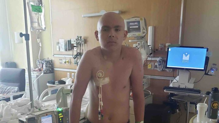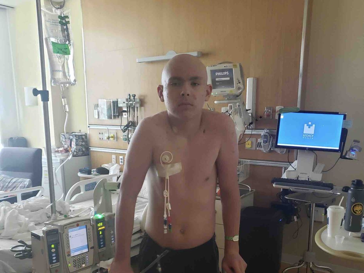 He was taken to Randall Children’s Hospital at Legacy Emanuel in Portland OR. They explained he had a tumor that had grown from the outside of the anterior part of his spine and into the spinal column, compressing the spinal cord, causing the paralysis. He underwent surgery (laminectomy) to remove the tumor from the interior part of the spine to stabilize the spinal cord. To complete the surgery they had to permanently remove the posterior portion of the T2, T3, T4, T5, and T6 vertebra. After the surgery another MRI showed that the spinal cord had been permanently damaged, On June 23rd the lab results came back showing he has cancer.