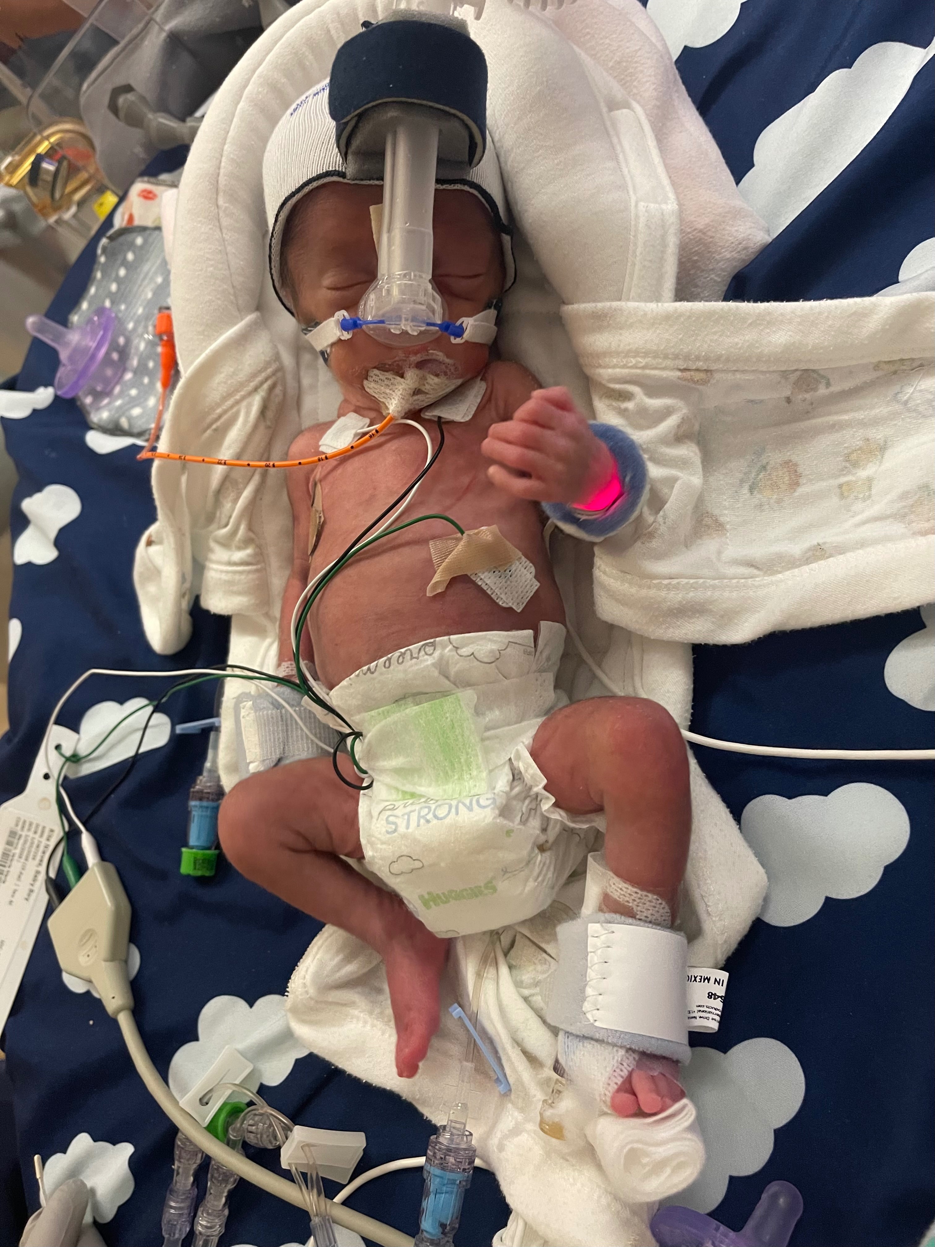 Now at the gestational age of 32 weeks, he continues to fight and grow each day in the NICU, surrounded by an incredible team of caregivers and the constant love of his parents.