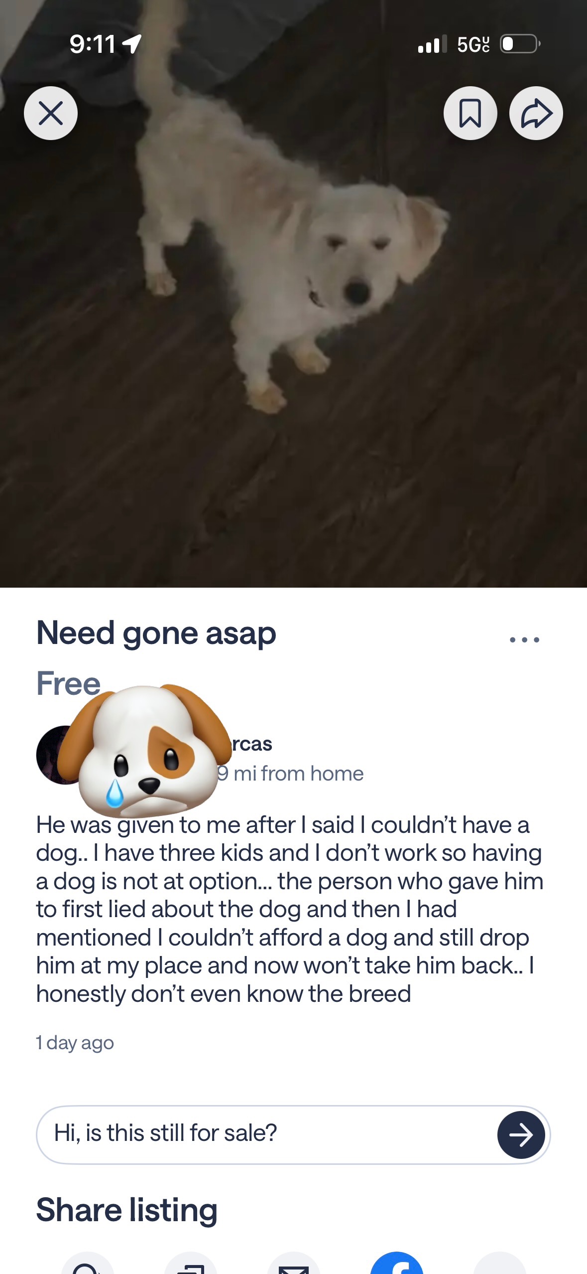 Here I am again! I am coming asking for all the animal lovers who have the means to help, please help yet another dog being given away for free :( he will need to be groomed, vaccinated & fixed. But he is safe and his happily ever after begins now!