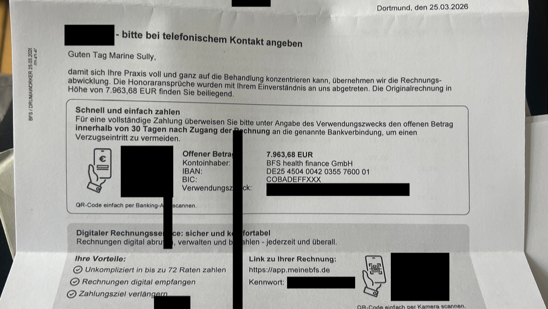 Payment is due at pickup after each surgery. I've applied to the clinic's financial partner BFS for an instalment plan - this allows up to 4 payments at no extra cost. This means your donations directly unlock each step of Fiume's treatment. Here is the confirmed invoice from the clinic and their financial partner (received on March 29th):