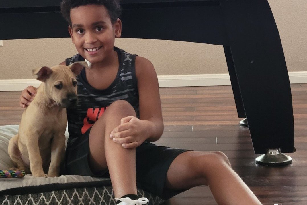 It is with relief that we learned that the tumor was benign (non-cancerous) and that Ty's prognosis for a full recovery is excellent. He was able to go home after over two weeks in the hospital where he was greeted by Miles, a puppy who is going to be at his side as he heals and recovers.