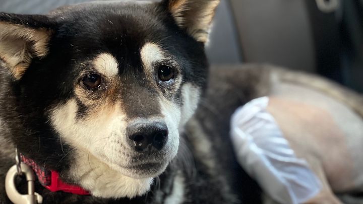 This is my dog, Bandit. During a playful game of fetch, Bandit ran for the ball and let out a painful scream. She could no longer bear weight on her left hind leg. A visit to the vet revealed Bandit tore her ACL and the recommended treatment is orthopedic surgery. A month has passed since our visit to the vet and she is still limping and in tremendous pain.