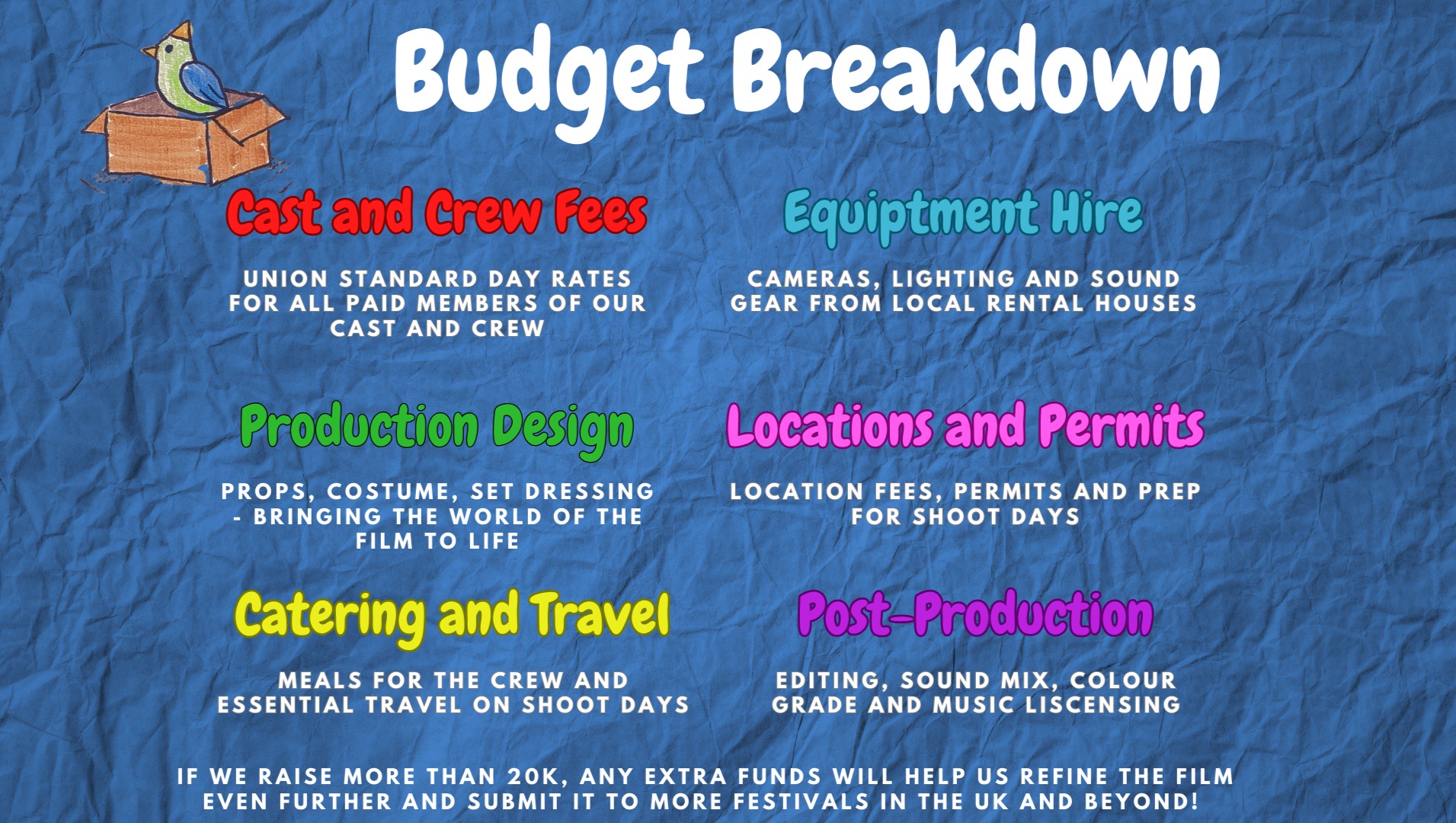 This project would not be possible without the support of people like you. Every pound we have donated will go towards: