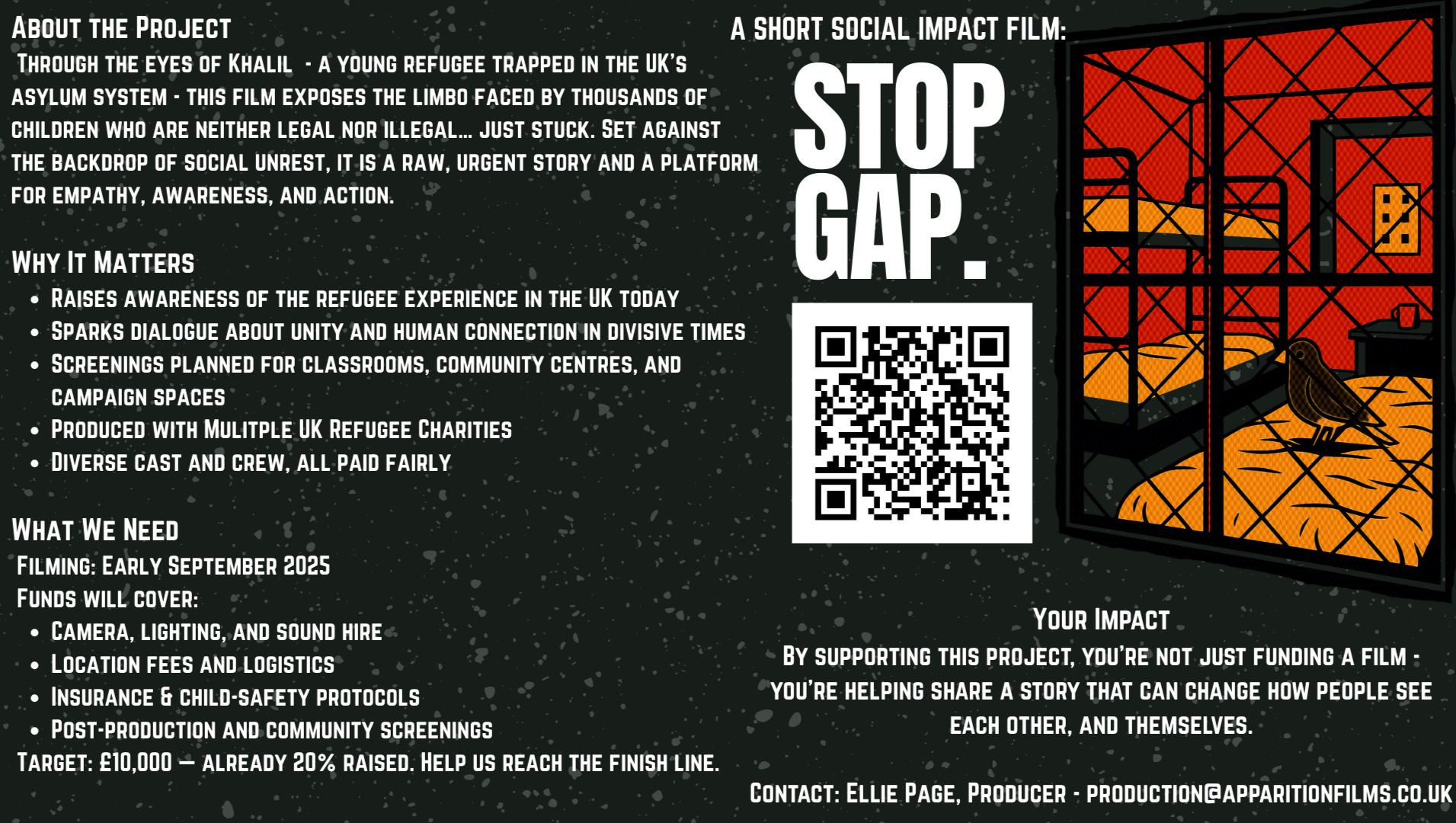 Set in a gritty, post-industrial corner of modern Britain, the film follows Khalil, a mute refugee boy who, after surviving a traumatic journey to the UK, finds refuge in an abandoned warehouse. There, armed only with imagination and scraps of cardboard, he begins to build a world of wonder.