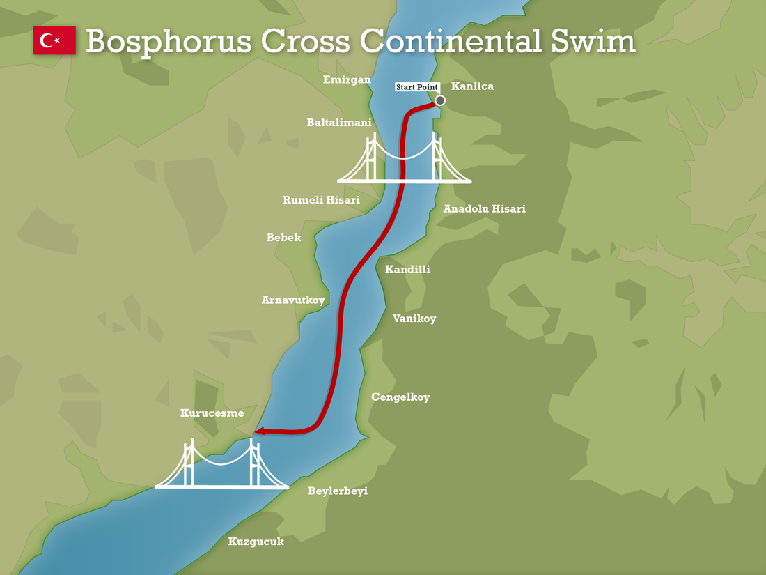 I am taking part in the International Bosphorus Cross-Continental Swim in Istanbul – 6.5 kilometres from Asia to Europe, against the powerful currents of the Bosphorus.