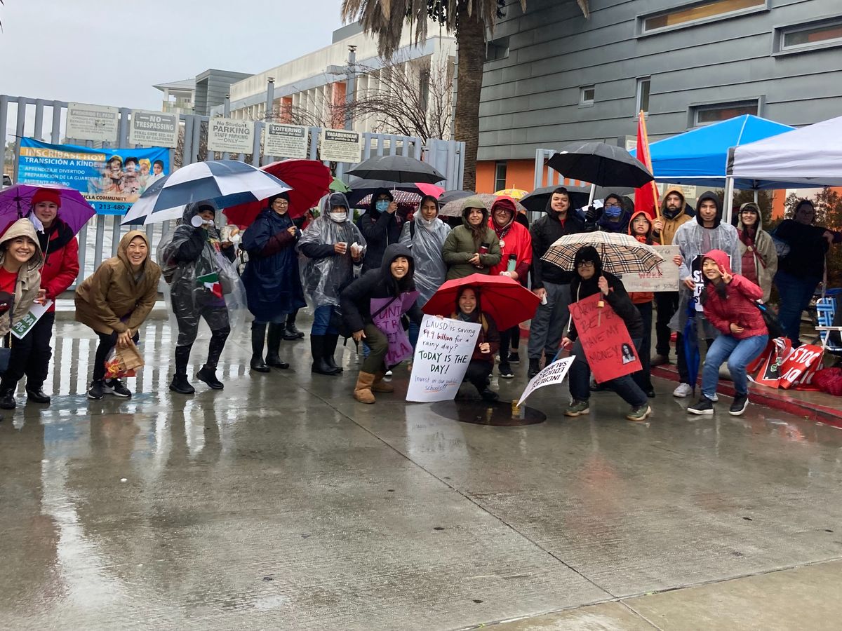 We are proud educators at the UCLA Community School in the Koreatown neighborhood of LA and members of United Teachers Los Angeles (UTLA). This week we are going on strike in solidarity with SEIU Local 99 members which includes thousands of cafeteria workers, bus drivers, custodians, special education assistants, and other essential school workers in the Los Angeles Unified School District (LAUSD).