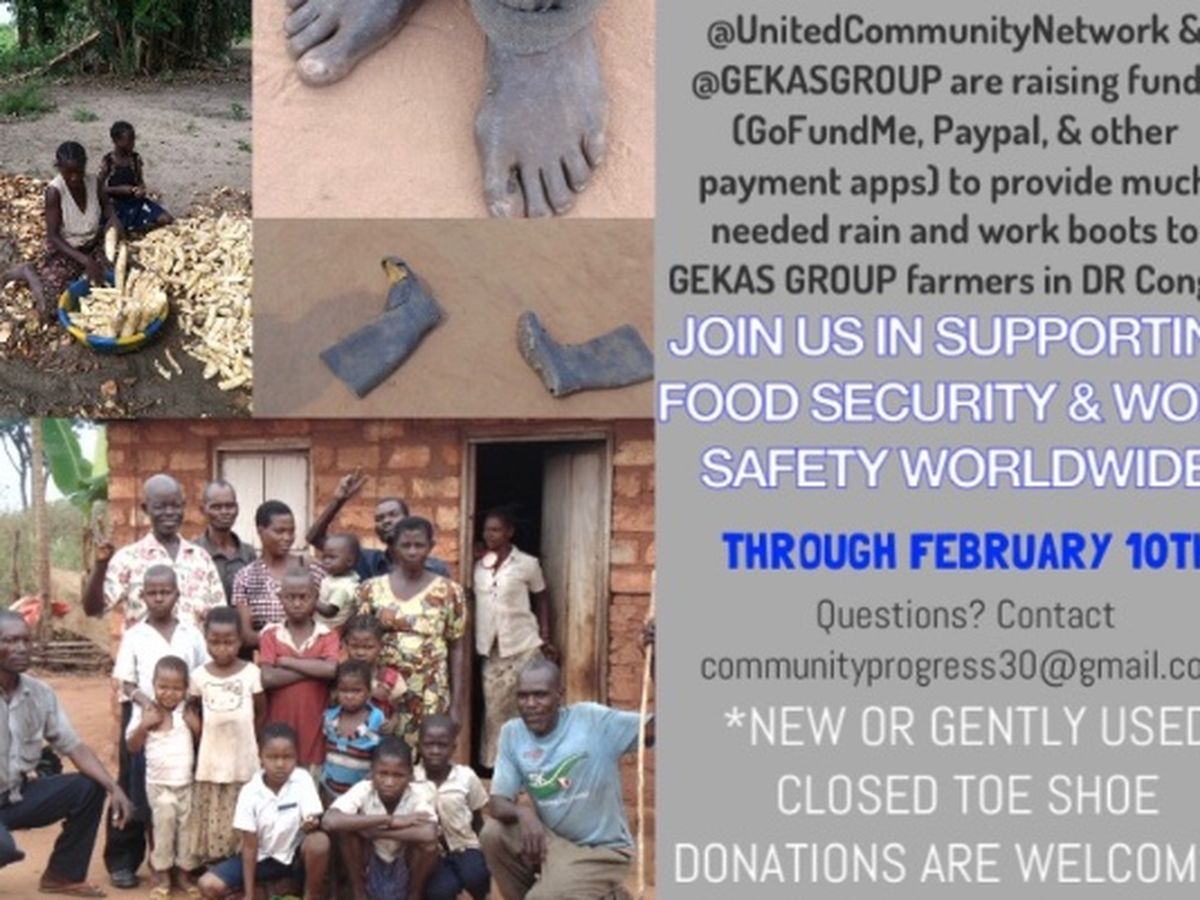 UCN has proudly partnered with GEKAS Group to raise $1000 that will provide these farmers with proper boots as they also “Grow where they are planted". We will be using the funds to purchase boots for at least 30 farmers (depending on funds raised) and transport them to Kinshasa, D.R. Congo on February 12th. We are asking anyone who finds it in their United soul to donate however much they can to support these farmers in safely meet their agricultural goals.