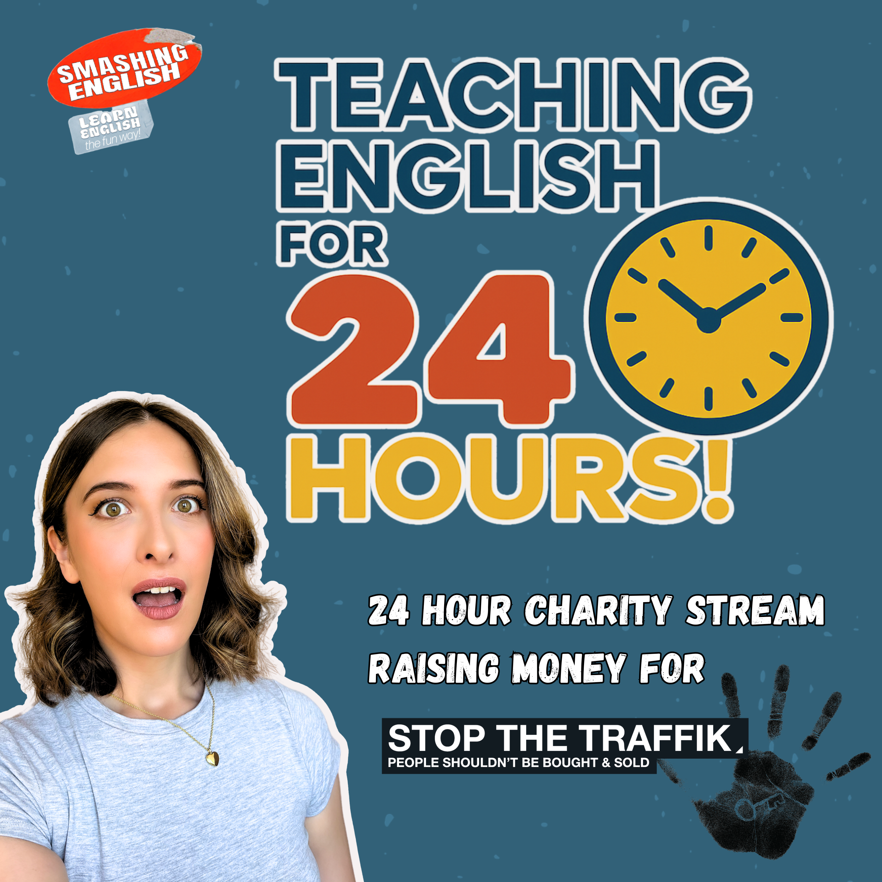 Smashing English is a Youtube channel with nearly 700,000 subscribers. They make fun English lessons for those who want to learn English as a second language. To raise money for STOP THE TRAFFIK, Laura will be teaching English non-stop for 24 hours on a Youtube Livestream.