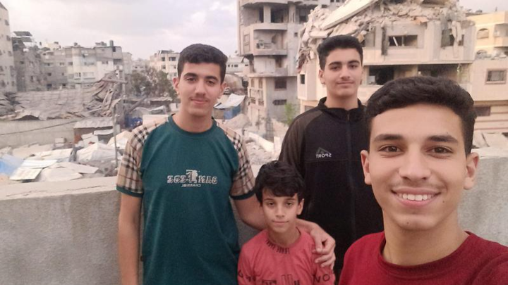 Hello, my name is Ahmed Hasanat. I’m 18 years old and live in Gaza with my three younger brothers and our mother, Rasha. My brothers are Hamad (17), Mohammed (16), and Karim (10).