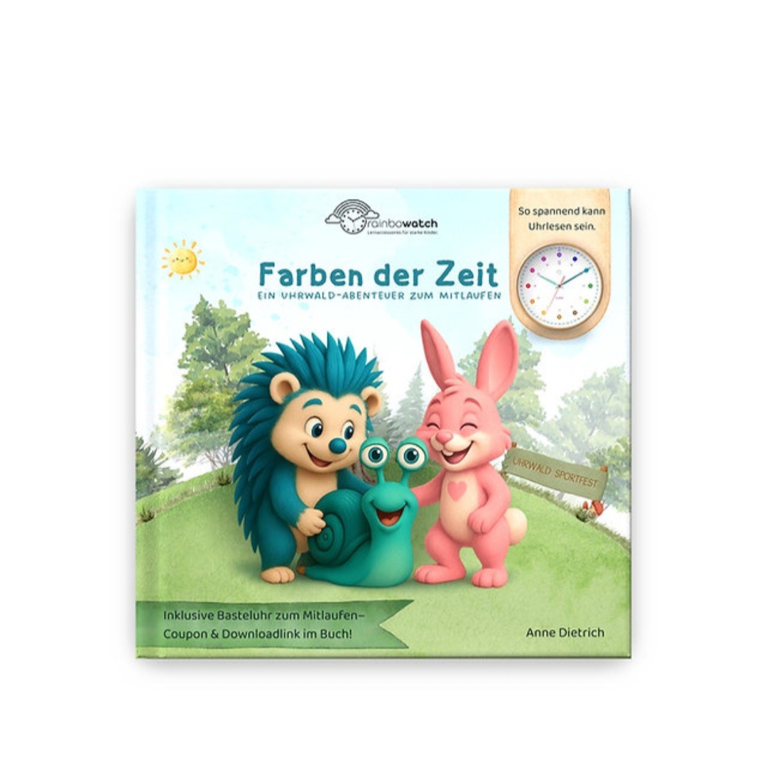 „Der Dauerlauf im Uhrwald“ ist mehr als nur eine Geschichte. Es ist eine liebevoll illustrierte Eselsbrücke, mit der Kinder ab 4 Jahren spielerisch lernen, wie Sekunden, Minuten und Stunden zusammenhängen – und wie man sie umrechnet.