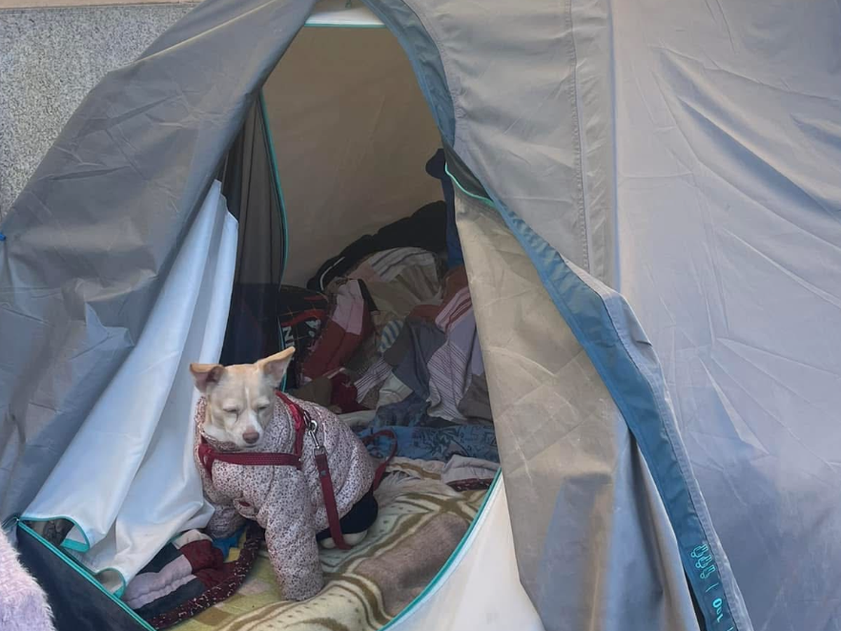 Está na rua desde então, e recusa-se a deixar a bichinha que tem desde os 4 meses. A cadela tem comida, medicação e desparatisacao.