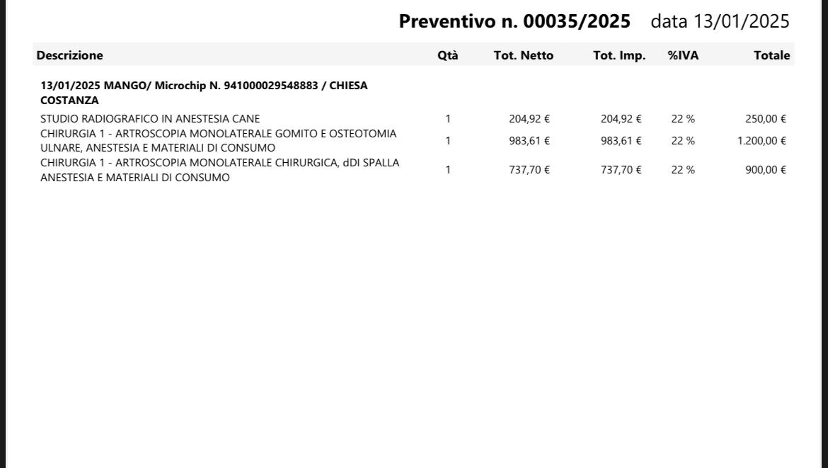 Il preventivo allegato si intende solo per una zampa ,perché l’operazioni verranno eseguite a entrambe le zampe però in differenti momenti.