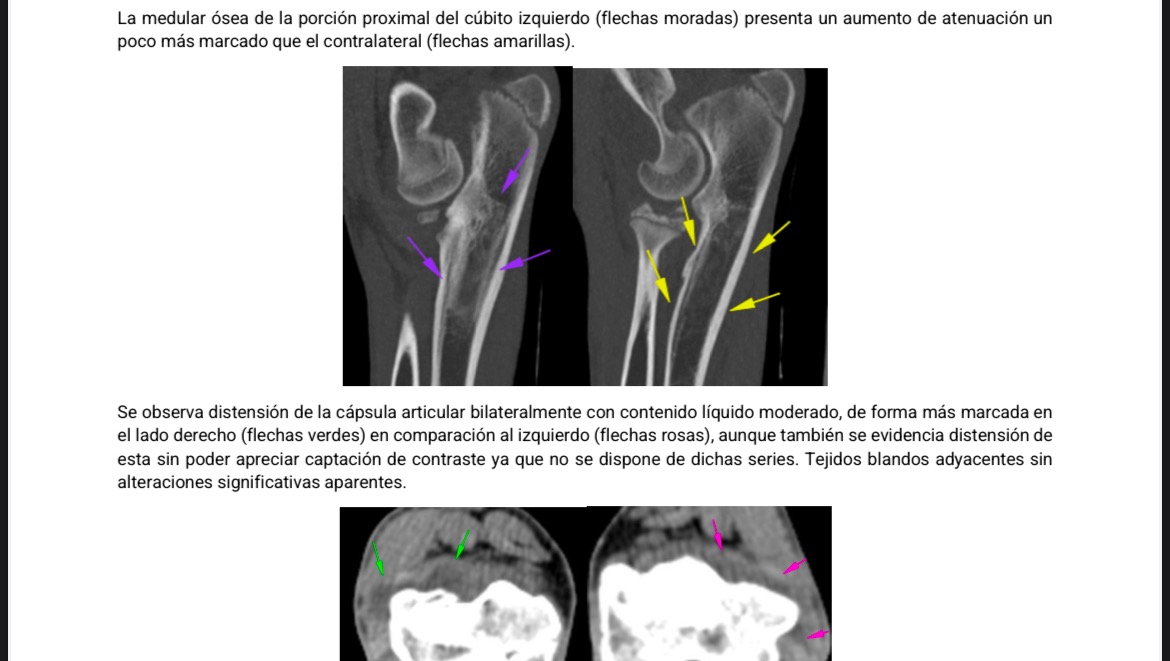 -Moderada ectasia capsular de ambos codos.