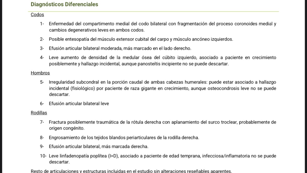 El paciente presenta múltiples patologías ortopédicas del cachorro. De estas, la displasia de los codos es