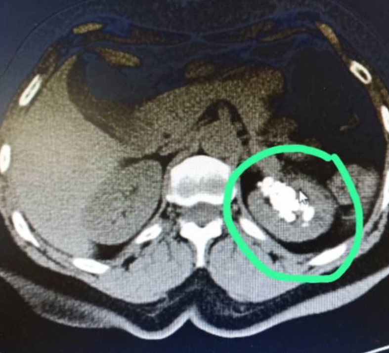 - RX abdominal: Donde se observó un "bulto de aparentes cálculos renales" (Ver PDF 1. Rx). Costo $30.