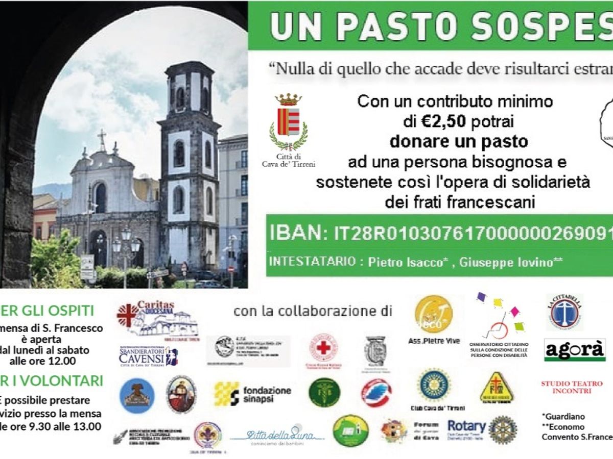 Il convento di San Francesco di Cava de' Tirreni, con il patrocinio dell'Amministrazione Servalli e con il supporto delle associazioni del territorio, ha riattivato la raccolta fondi per sostenere la mensa dei poveri.