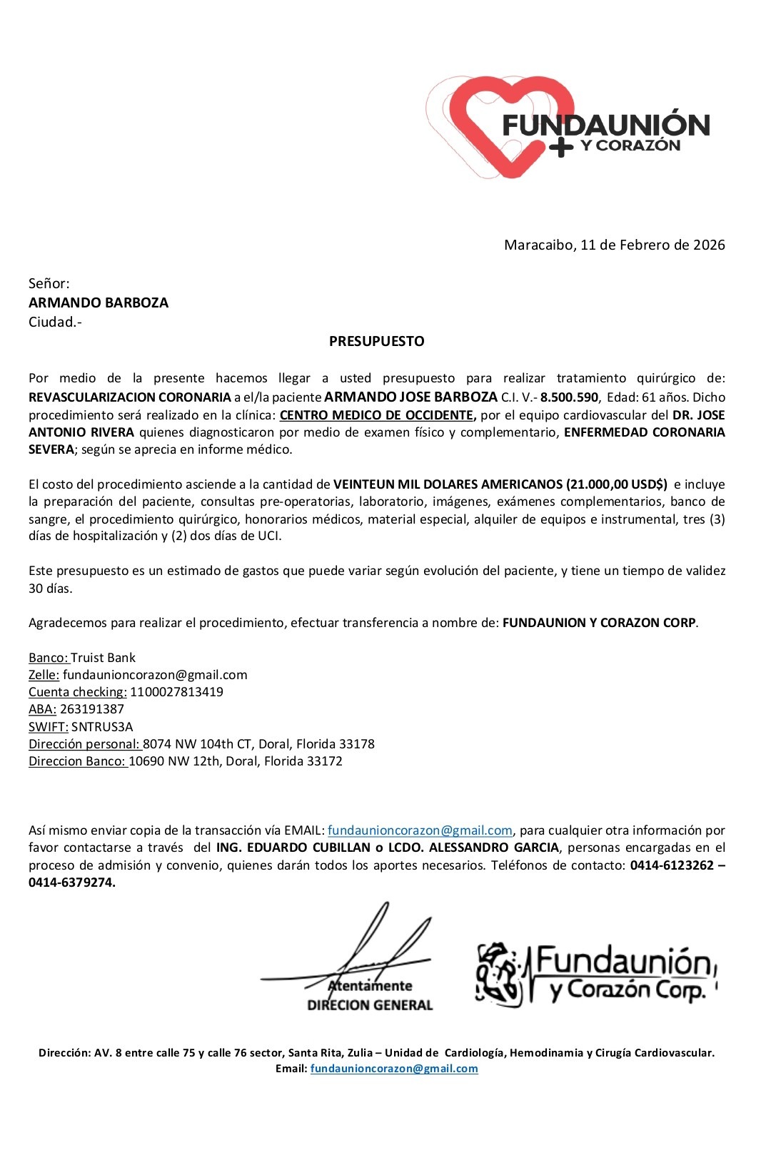 Hello, my name is Andreina Barboza. I am launching this campaign to share the critical health situation my father, Armando Barboza, is currently facing and to formally request your valuable support.
