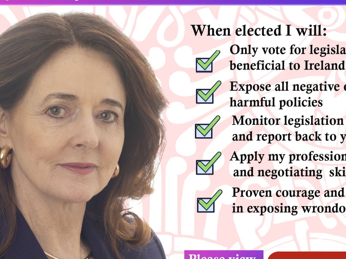 • Evaluate all proposed legislation emanating from the E.U. to ensure its relevance, benefit, and suitability for the People of Ireland and especially her Constituents in Ireland South. In particular, she will ensure that she will only vote in favor of legislation that is beneficial for the People of Ireland and especially her Constituents in Ireland South.