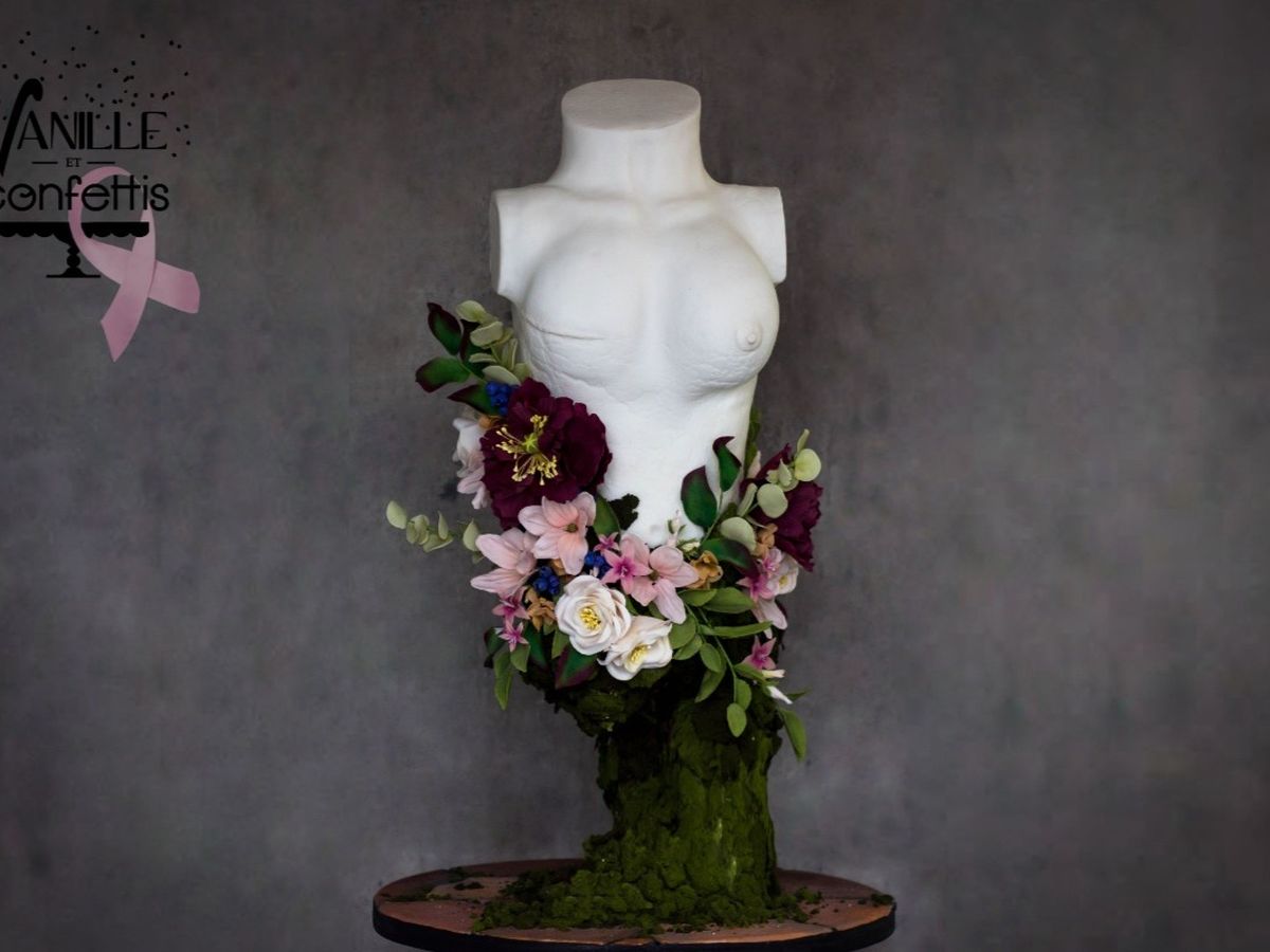 Aujourd’hui, nous sollicitons l’aide de nos clients, fans, amis et famille dans le but d’augmenter le montant de notre don. Depuis quelques semaines, nous travaillons sur un gâteau ayant pour thème le cancer du sein parce que nous avons à cœur cette cause en tant que femmes, mais aussi en tant qu’amies de femmes qui se sont battues contre ce cancer dans les dernières années. Nous avons mis sur ce gâteau tout notre savoir-faire, notre passion et notre personnalité et il représente toute la beauté du corps d’une femme post-mastectomie avec l’idée d’une renaissance du corps après les défis.