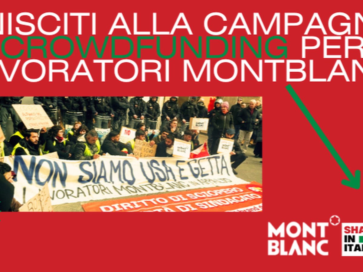 Il crowdfunding verrà utilizzato per dare un sostegno economico ai lavoratori di Campi Bisenzio (FI) che stanno coraggiosamente lottando contro questo sistema criminale, per consentirgli di portare avanti la rivendicazione di ricollocamento nelle filiere Montblanc.