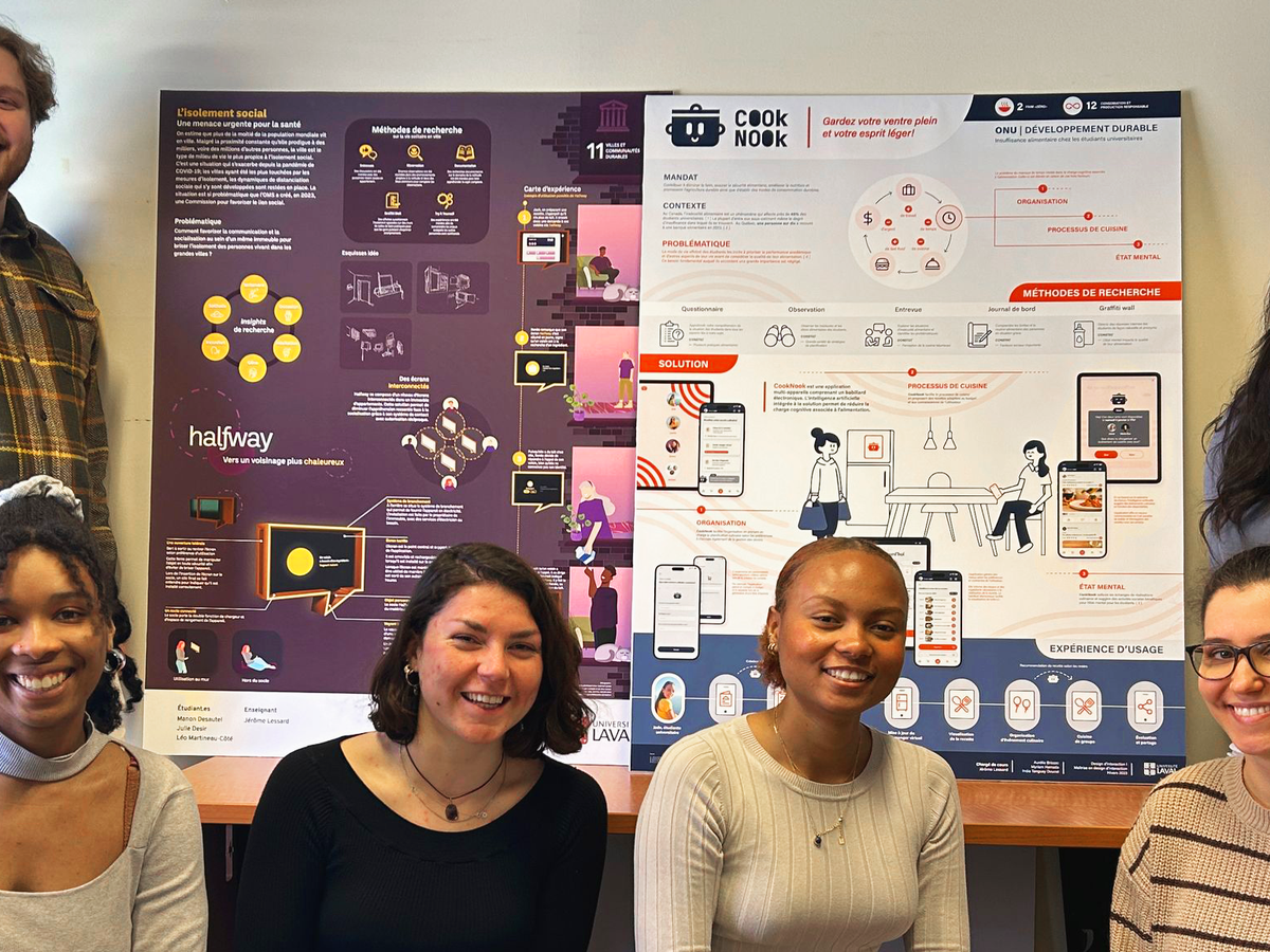 Nos projets proposent des solutions pour aider aux situations d’insécurité alimentaire (CookNook — Aurélie, India et Myriam) et à l’isolement social en appartement (Halfway — Julie, Léo et Manon), des problématiques en croissance chez nous, et ailleurs dans le monde.