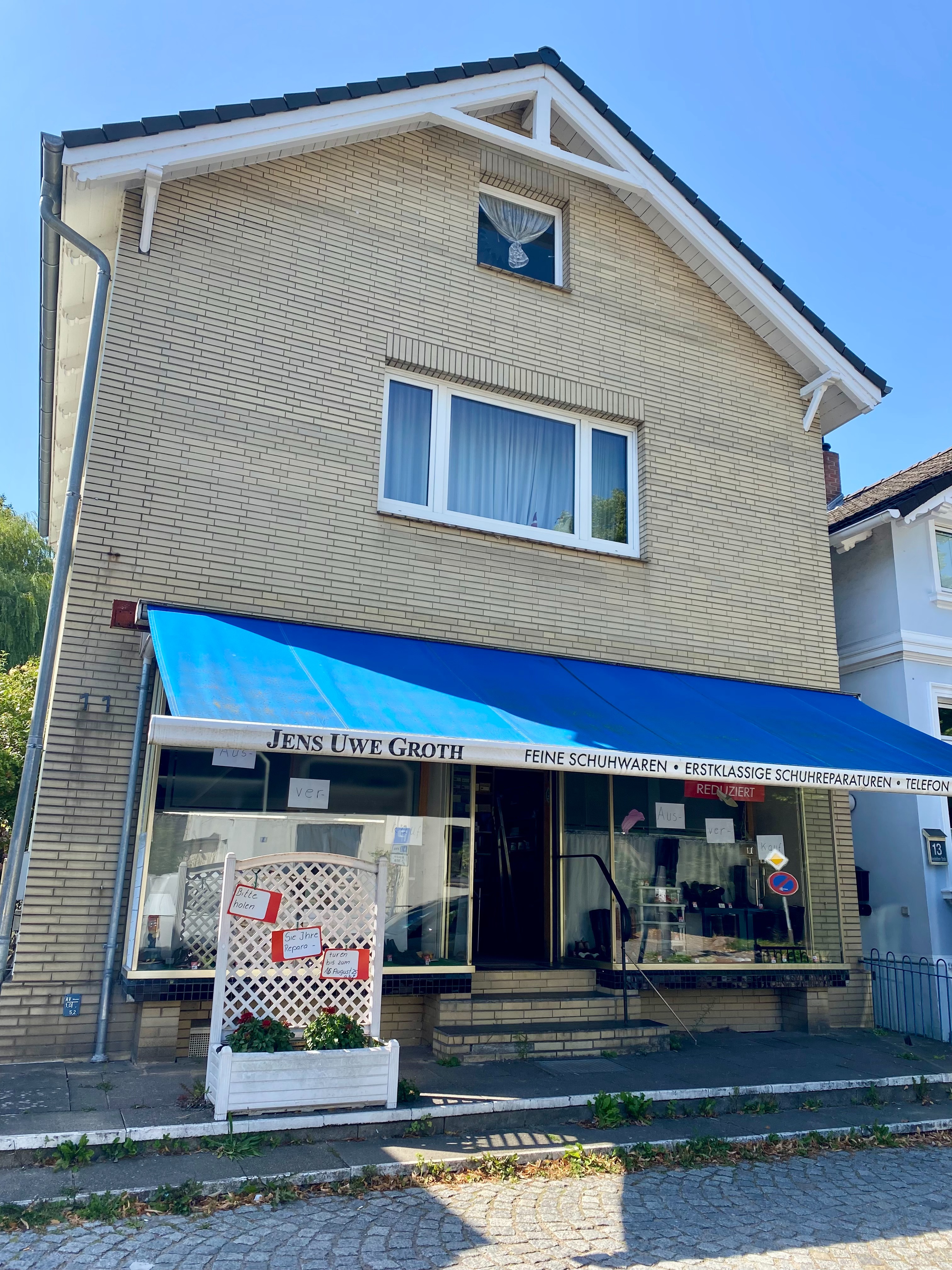Jens-Uwe trägt seine Lebenslage mit unvergleichlicher Würde und wird sich die nächsten Wochen noch in der Reha befinden. Er kann sein großartiges Lebenswerk nach 40 Jahren nicht mehr selbst abschließen. Seine Schwester Marlies und seine Freundin Marlies kümmern sich ehrenamtlich um die Schließung seines Geschäfts. Sie räumen fleißig auf, verkauften Schuhe und Ware, kümmern sich um die Auflösung des Inventars, erledigen die Buchhaltung und organisieren die Abholung der Reparaturarbeiten – und tun dies mit viel Liebe und Engagement. Ein herzliches Dankeschön an beide!
