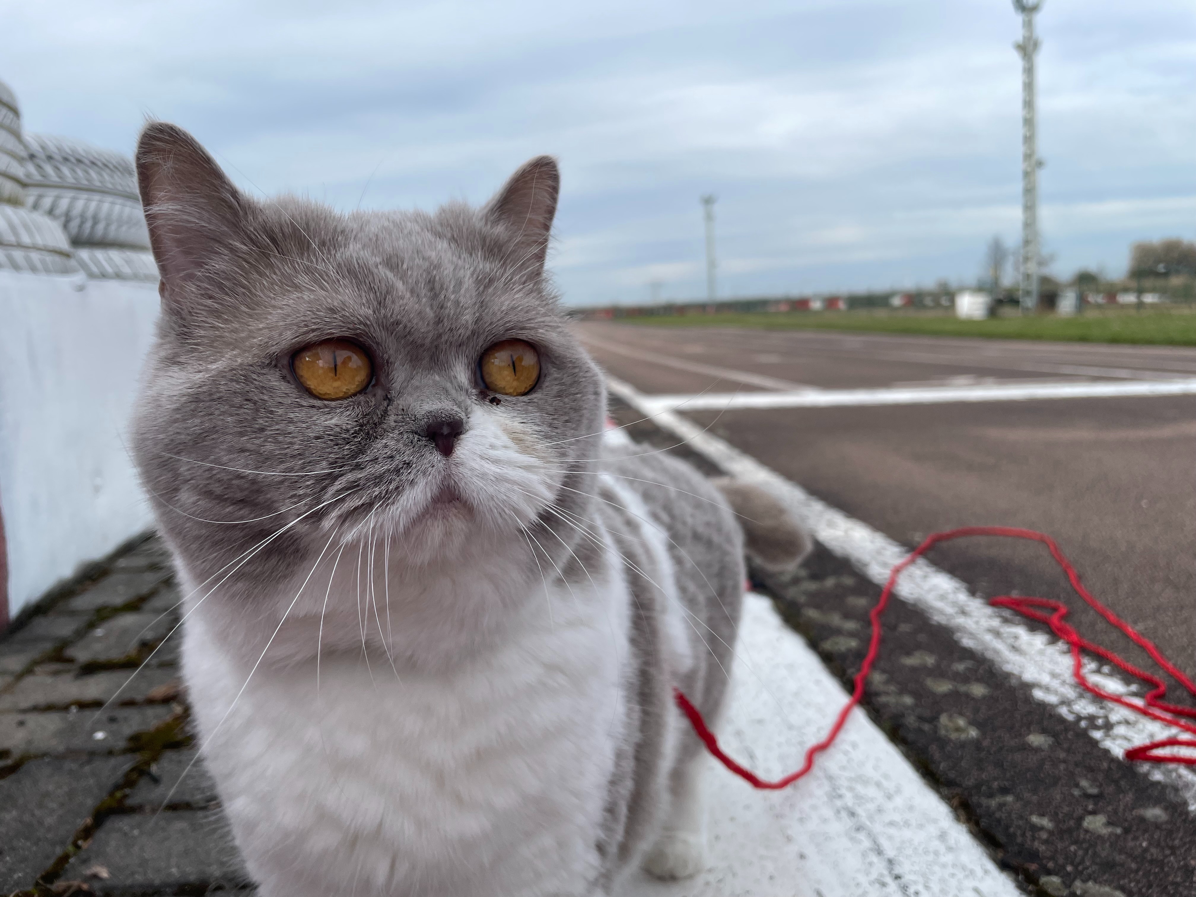 Luna geht gerne im Hof spazieren, aber nur, wenn es ruhig ist, hier auf der Kartbahn