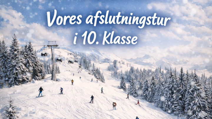 Vi er eleverne i 10. klasse og står ved afslutningen på vores fælles skoletid. Efter mange år sammen ønsker vi at afslutte denne tid med en fælles ski afslutningstur.